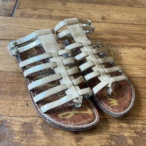 Sam Edelman Gilda Women's Gladiator Sandal in Almond Nude Patent Leather Sz 8.5
