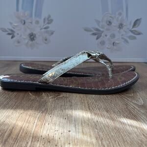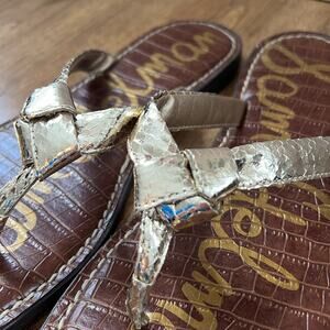Sam Edelman Giles Gold Snakeskin Print Knotted Thong Sandals