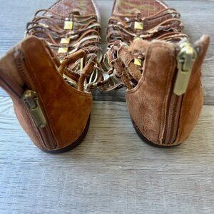 Sam Edelman Gladiator Studded Metallic Snakeskin Gold Zip Up Sandals Strappy