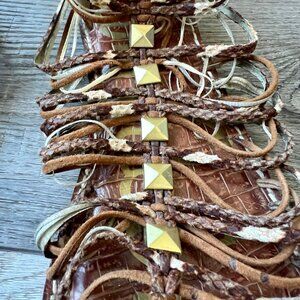 Sam Edelman Gladiator Studded Metallic Snakeskin Gold Zip Up Sandals Strappy in womens size 10. Excellent condition and from a smoke free home.
