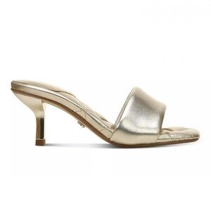 Sam Edelman Gold Leather Slip On Heels Square Toe Sz 5.5