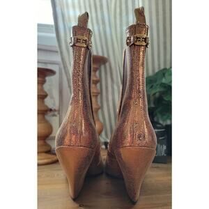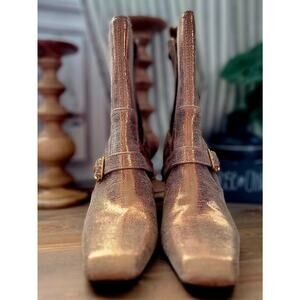 Enter the golden girl, Suzette. These gilded western wonders feature a sleek silhouette and angular square toe. Show them off with cropped denim or dresses for an unexpected twist.