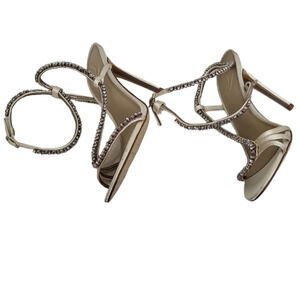Sparkling crystals illuminate the crisscrossing straps of this elegant sandal.