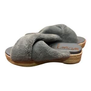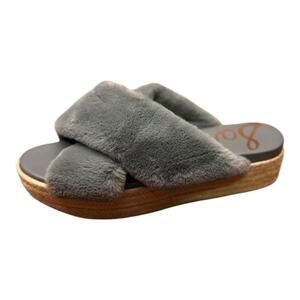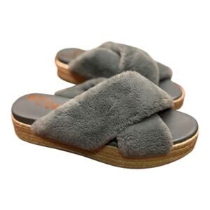 Sam Edelman Gray Faux Fur Criss Cross Espadrille Platform Slides Size 9.5