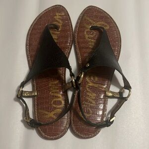 Sam Edelman Greta Black Leather Thong Sandals | Size 10M | Boho Gold Hardware
