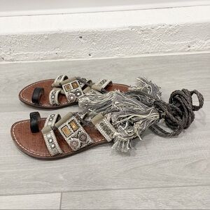 Sam Edelman Gretchen Gladiator Sandal Boho Tassels Embellished Wrap Around Ankle