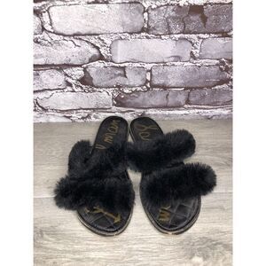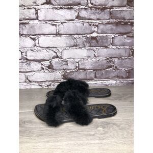 Sam Edelman Griselda Black Faux Fur Strap Slides Sandals Women’s Sz 9M US/39EU