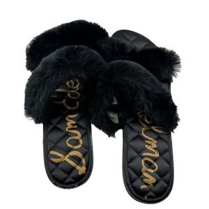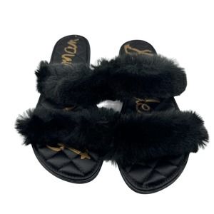 Sam Edelman Griselda Sandal Womens Size 8 Black Faux Fur Slide Slip On