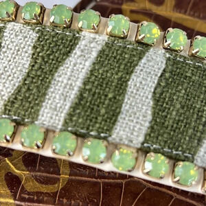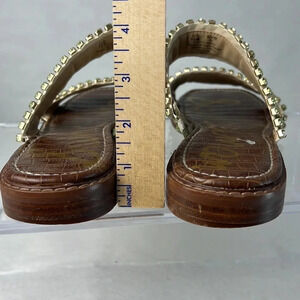 Sam Edelman HOPIE Zebra Green Linen Square Toe Slide Sandals Rhinestones Size 11 Fern/Natural