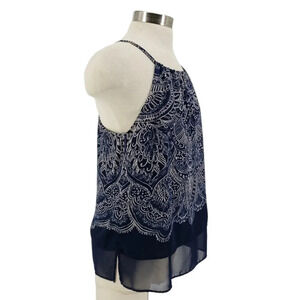 Sam Edelman Halter Tank Top Navy Keyhole Layered Sleeveless Shirt