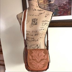 Sam Edelman Leather Bag. New with tag. Gorgeous handbag and color. Woven shoulder strap. Foldover flap with magnetic closure. Exterior features embroidered detail. Interior features 1 zip wall pocket and 1 slip wall pocket. Approx: 7.5" H x 8.5" W x 3.5"D. Approx: 18.25 strap drop.