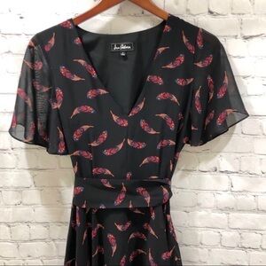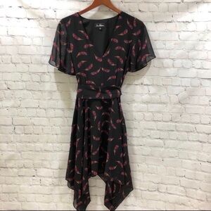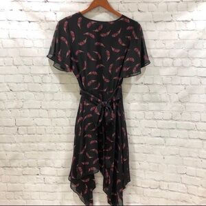 Sam Edelman Handkerchief Dress Boho Feather Print Size 4 Black