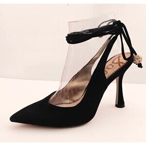Sam Edelman Harvie Blk Suede Heels Suede Ankle Wrap Crystal Trim Sz 7.5