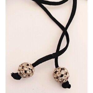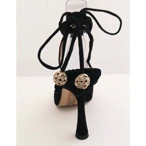 Sam Edelman style Harvie , a soft black suede heeled sandal, accented with a suede ankle wrap with round crystal ball tassel ends. The wrap is a suede cording with a slide adjust on the back of the heel that keeps the wrap in place . Sz 7.5. Sculpt heel total height 4". Excellent pre owned condition, worn only once, suede looks great, heels are not nicked, no missing stones on the crystal trim, shoes are clean , they look great. Dressy with a kick!