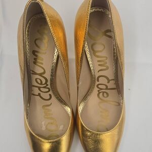 Sam Edelman Hazel Point Toe Pump Gold Distressed Leather, Sz 8M, NIB