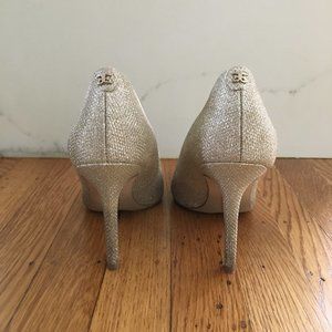 Sam Edelamn Hazel Stilletos in Jute Mesh with a lovely silver sparkle.