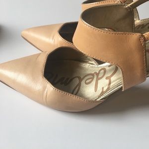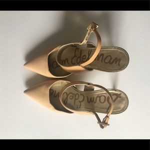 Size 6. Strap back. Beige with gold crocodile heel. Great neutral shoe. Some wear which is shown in photos.