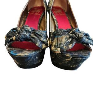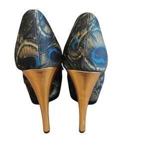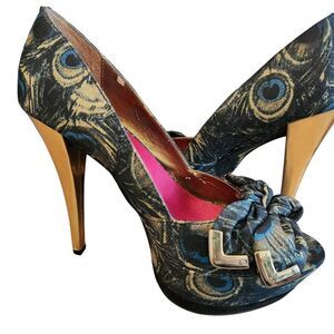 Sam Edelman Heels Womens 8.5 Stiletto Platform Peacock Animal Print Peep Toe