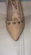 Chic beige heels with silver studs. Elegant pointed toe design. Perfect for stylish outings or work!
