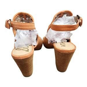 Sam Edelman Holly slingback sandals. Adjustable ankle strap. Heel is approximately 3" high. Suede-like material.