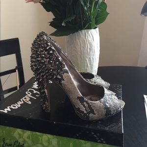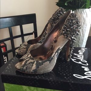 Size 7 Sam Edelman grey python studded peep toe pumps. Worn ~5 times.