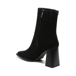 Sam Edelman Ivette Black Suede Side Zipper Squared Toe Block Heeled Ankle Boots