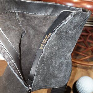 Like new booties, black suede. Side zipper for easy pull on. Fun boots for dress up or casual days.