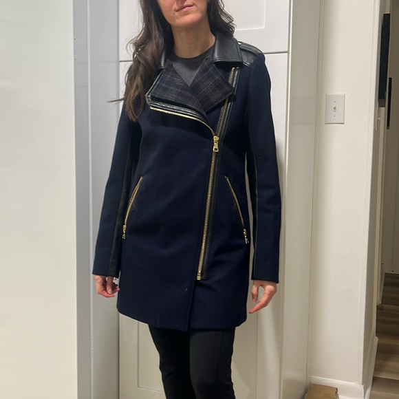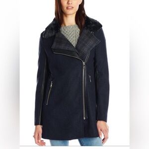 Like new!! I am more typically a small, so I would say this extra small runs big. Fun layering of patterns and textures. (No fur collar)