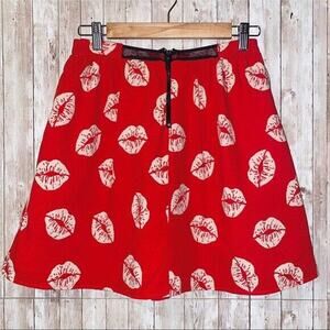 Sam Edelman Jacquard Lip Print Mini Skirt - Size 6 - Red and White