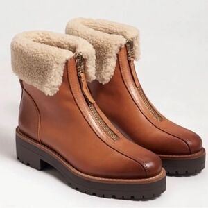 Sam Edelman Jacquie 2 chestnut leather and shearling lug sole booties size 8.5