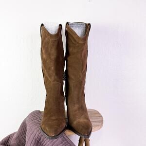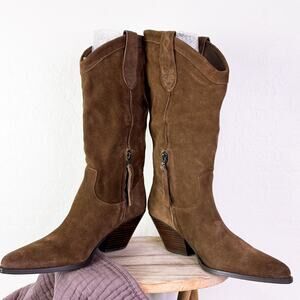 Sam Edelman Jamie Block Heels Suede Cowboy Country Western Boots Brown 9.5 NWT