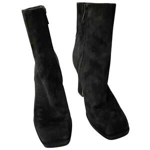 Sam Edelman Jaye Suede Ankle Boots 8M Black Heeled Square Toe Casual