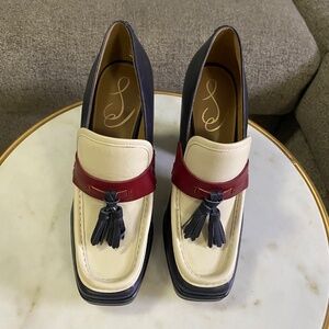 Sam Edelman Jed Baltic Navy/Modern Ivory/Bordeaux Slip On Squared Toe Loafers