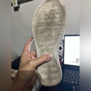 Wide, crisscrossing straps bring contemporary sophistication to this rope-trimmed slide sandal.
