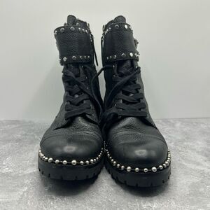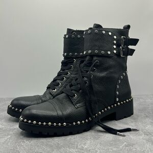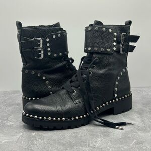 Sam Edelman Jennifer Black Leather Combat Boots Size 8M Studded Moto Biker