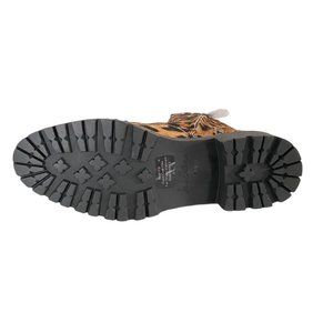 Combat Boots, leopard print, leather Boots, Stylish boots, Lace up boots, round toe, side zipper, pull tab