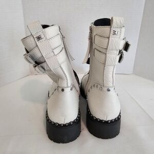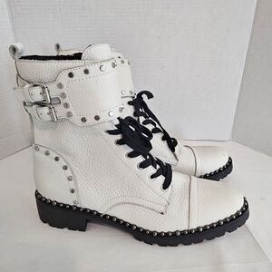 Sam Edelman "Jennifer" leather moto combat boots - 11 - white/black/silver