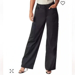 Style tags: Sam Edelman, wide leg, cargo, high rise, sheen, shiny, black, pockets, trendy, utility, chic