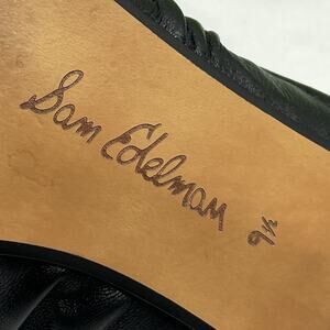 Sam Edelman Julia Black Leather Ruched Pointed Toe Bow Detail Mules Size 9.5