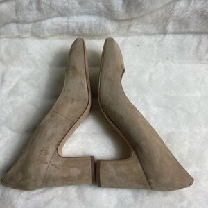 Sam Edelman Junie suede Khaki slip on block heels round toe size 9.5 pre owned in good used condition a small transfer mark on the side of the outer side of the left heel see all pictures any questions please message. E9