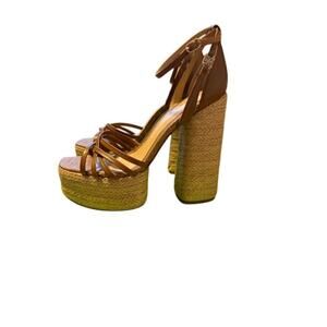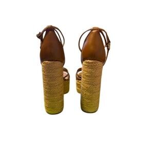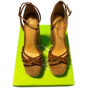 Sam Edelman “Kade” Leather and Jute Heeled Sandals in Brown – NEW – Size 9 M