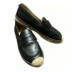 Braided jute trim along the sole adds an earthy element to this espadrille-inspired penny loafer crafted of smooth leather.