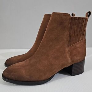 Sam Edelman Kaiti Zip Ankle Bootie Womens 7 Brown Suede Low Heel Western NEW