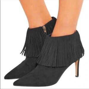 Sam Edelman Kandice Suede Fringe High Heel Booties Black Size 6 EUC