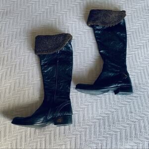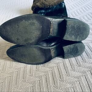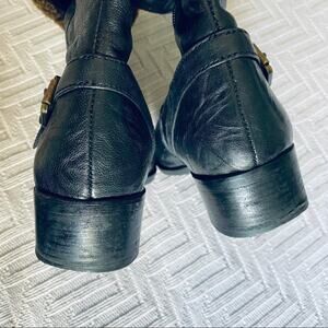Sam Edelman black Kara over the knee boots, size 7.5. Wrinkled black leather, side 3/4 zipper, can be knee high or over the knee style, shearling fur cuff. Previously loved but in excellent condition, some minor scuffs on toes, see detail photo. Non smoking and pet free house.