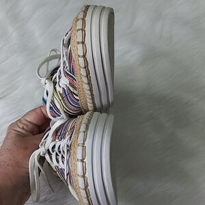 Good pre-owned condition canvas low-top in multi-color stripes.