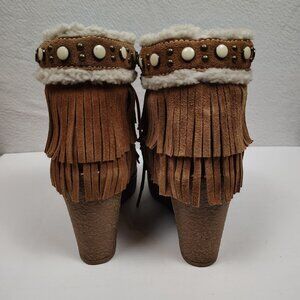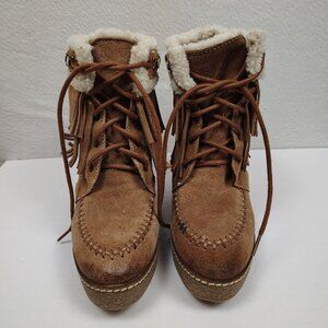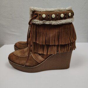 Sam Edelman Kemper Fringe Wedge Bootie In Suede Womens size 8M