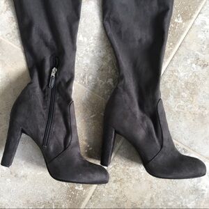 NEW without box. Stretch suede over the knee boot. Dark grey. Toggle at back to secure. The perfect Fall boot!