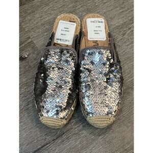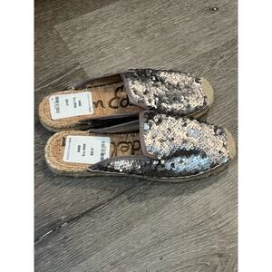 Sam Edelman Kerry Slip On Espadrille Flats Pewter Sequins. NWOB SZ 6.5M
