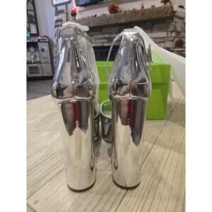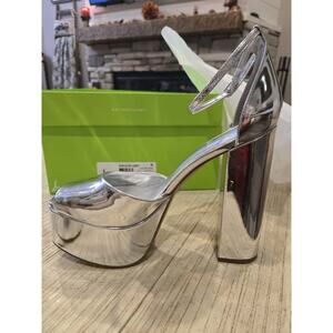 Elevate your style with these stunning Sam Edelman Kori platform heels in a dazzling silver hue. Designed for the modern woman, these high-heeled beauties feature a chic open toe and a secure ankle strap with a buckle closure. The high platform heel adds a touch of glamour, making them perfect for parties and cocktail events. Whether you're dancing the night away or making a grand entrance, these heels are your go-to choice. New in box.